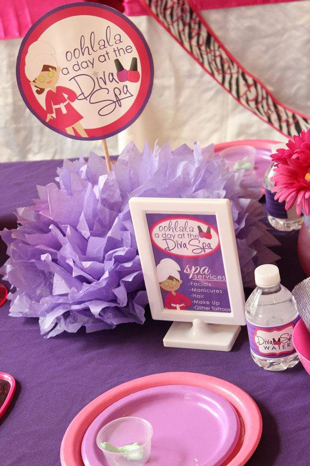 Oohlala a day at the Diva Spa! Beautifully decorated in pink and purple with accents of silver, this Spa Party was so much fun! Guests enjoyed all natural facials, hair, make-up, mini-manicures, karaoke, glitter tattoos and a photo booth filled with tons of fun props!