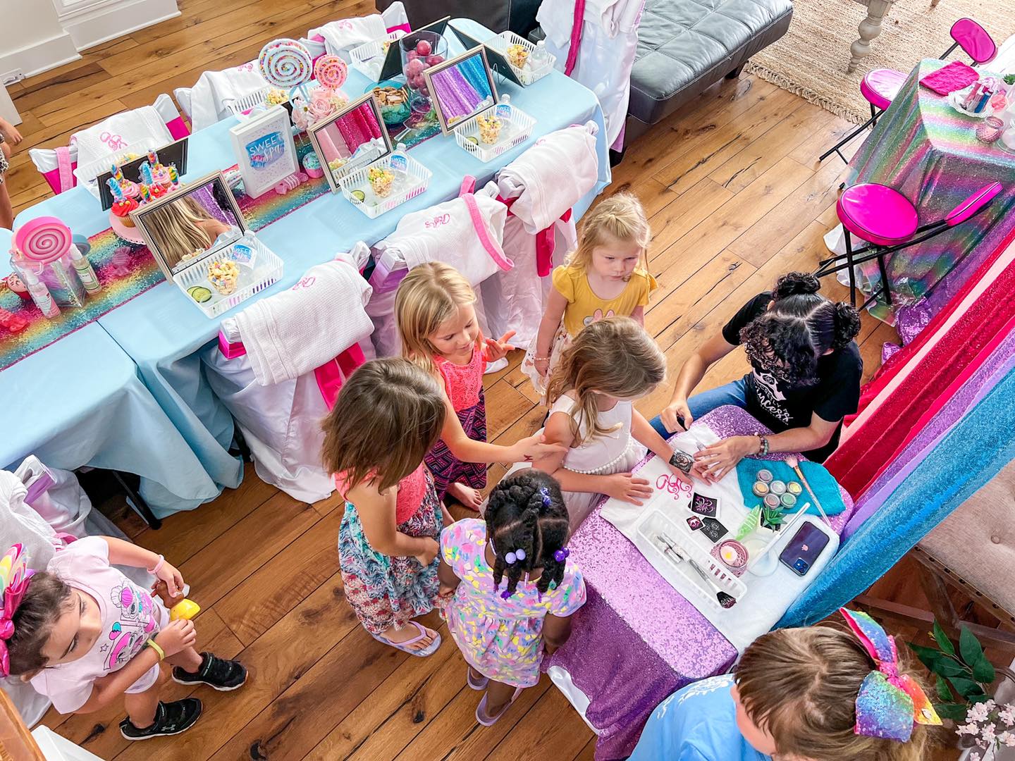 Our Popper Spa Party was originally a custom request that has become a popular repeat party theme! Decorated with fun popper props and vibrant colors, this theme is perfect for girls who love fidget poppers.